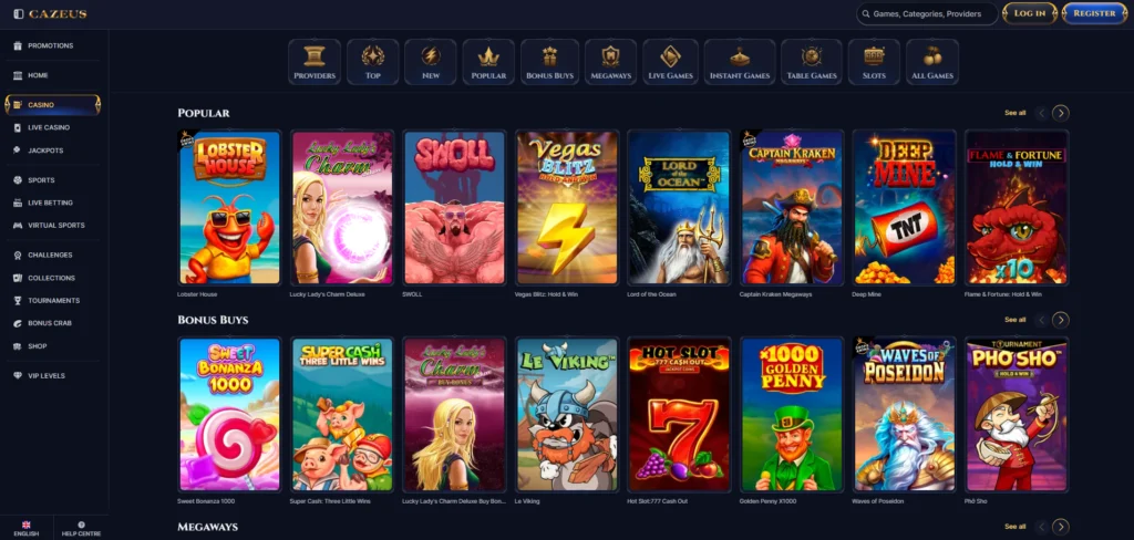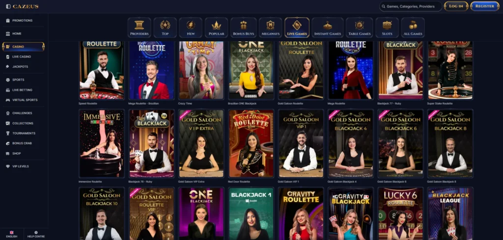 Entdecken Sie eine umfangreiche Spielauswahl im Cazeus Casino