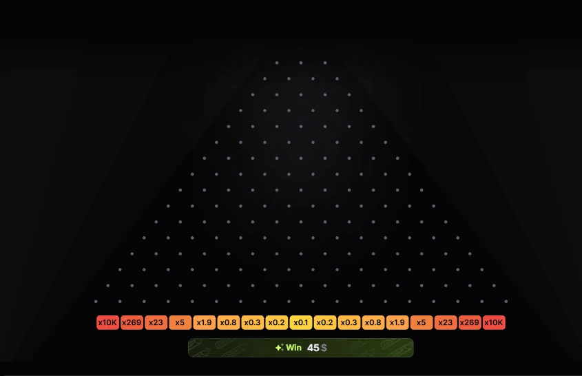 Sobald der Spieler auf den Einsatz klickt, fällt die Kugel und hüpft durch die Punkte nach unten, bis sie das Feld erreicht, das den Wert des Multiplikators anzeigt. In der Mitte bieten die Multiplikatoren einen niedrigeren Wert, von 0,1x bis 0,5x. In den Ecken sind die Werte höher und variieren von 7,2x bis 10.000x, aber sie sind schwerer zu erreichen als in der Mitte. Ähnlich wie bei den Reihen ändern sich die Multiplikatorwerte je nach der von Ihnen gewählten Risikostufe.